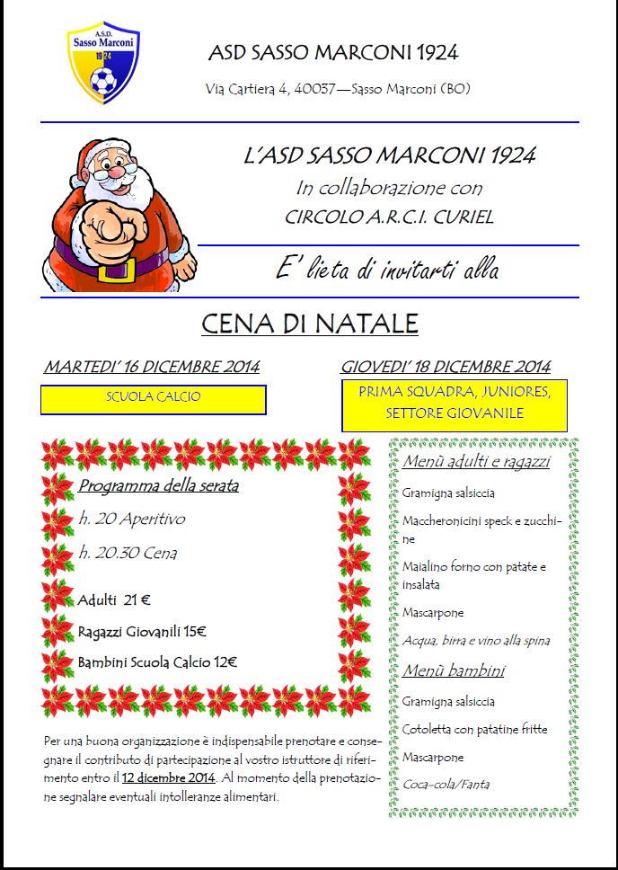 Prenotazione obbligatoria entro 12 Dicembre - SCARICA IL VOLANTINO COMPLETO